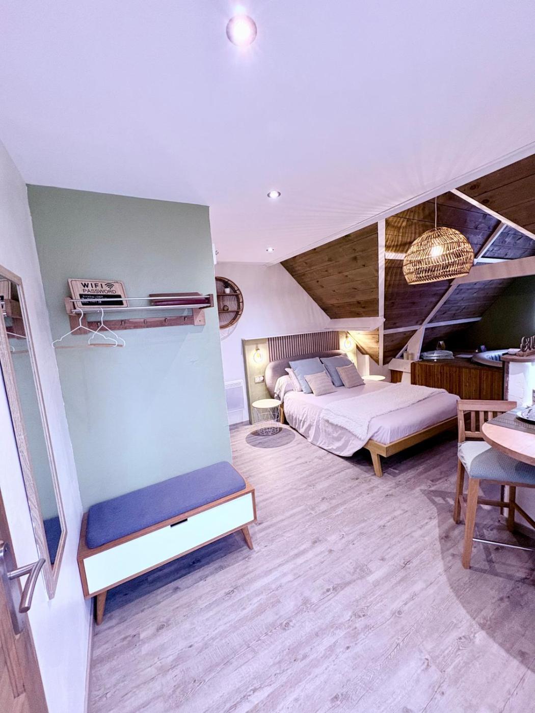 Chambre Double. The hot tub is the standout feature of this double room. Featuring free toiletries and bathrobes, this double room includes a private bathroom with a shower and a hairdryer. The well-equipped kitchenette has a refrigerator, kitchenware and a microwave. The spacious air-conditioned double room features a flat-screen TV with streaming services, a private entrance, soundproof walls and a tea and coffee maker. The unit has 1 bed.