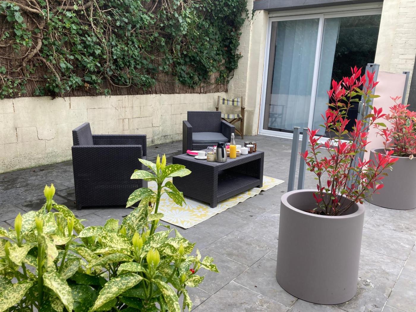 Suite avec Terrasse. Boasting a private entrance, this suite includes 1 living room, 1 separate bedroom and 1 bathroom with a shower and a hairdryer. Featuring a terrace with garden views, this suite also offers a tea and coffee maker and a flat-screen TV with streaming services. The unit has 3 beds.