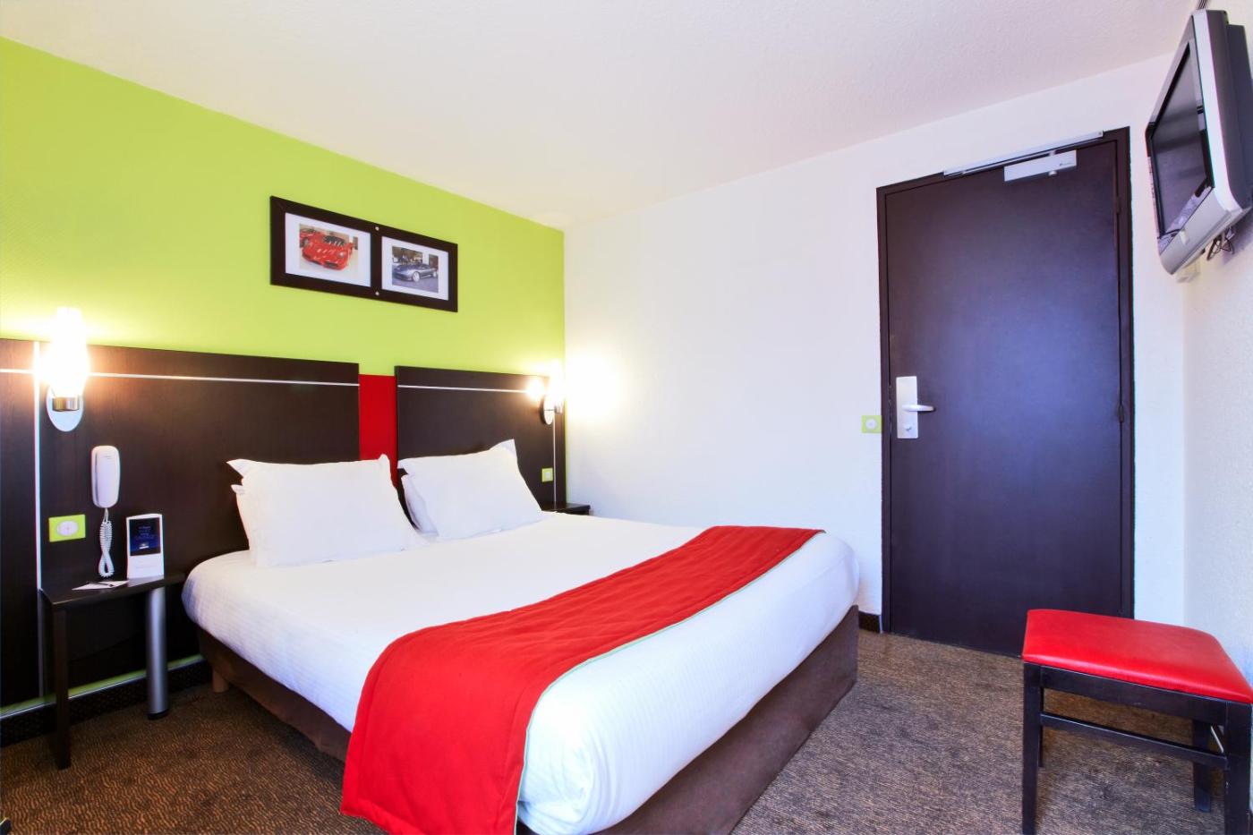 Arborant une Ferrari rouge dans le hall, lhôtel Kyriad Design Enzo Reims Tinqueux vous accueille à Tinqueux, à 4 km de la gare SNCF et TGV de Reims. Il propose un petit-déjeuner buffet, un centre de bien-être avec sauna et hammam, ainsi quun parking privé gratuit.