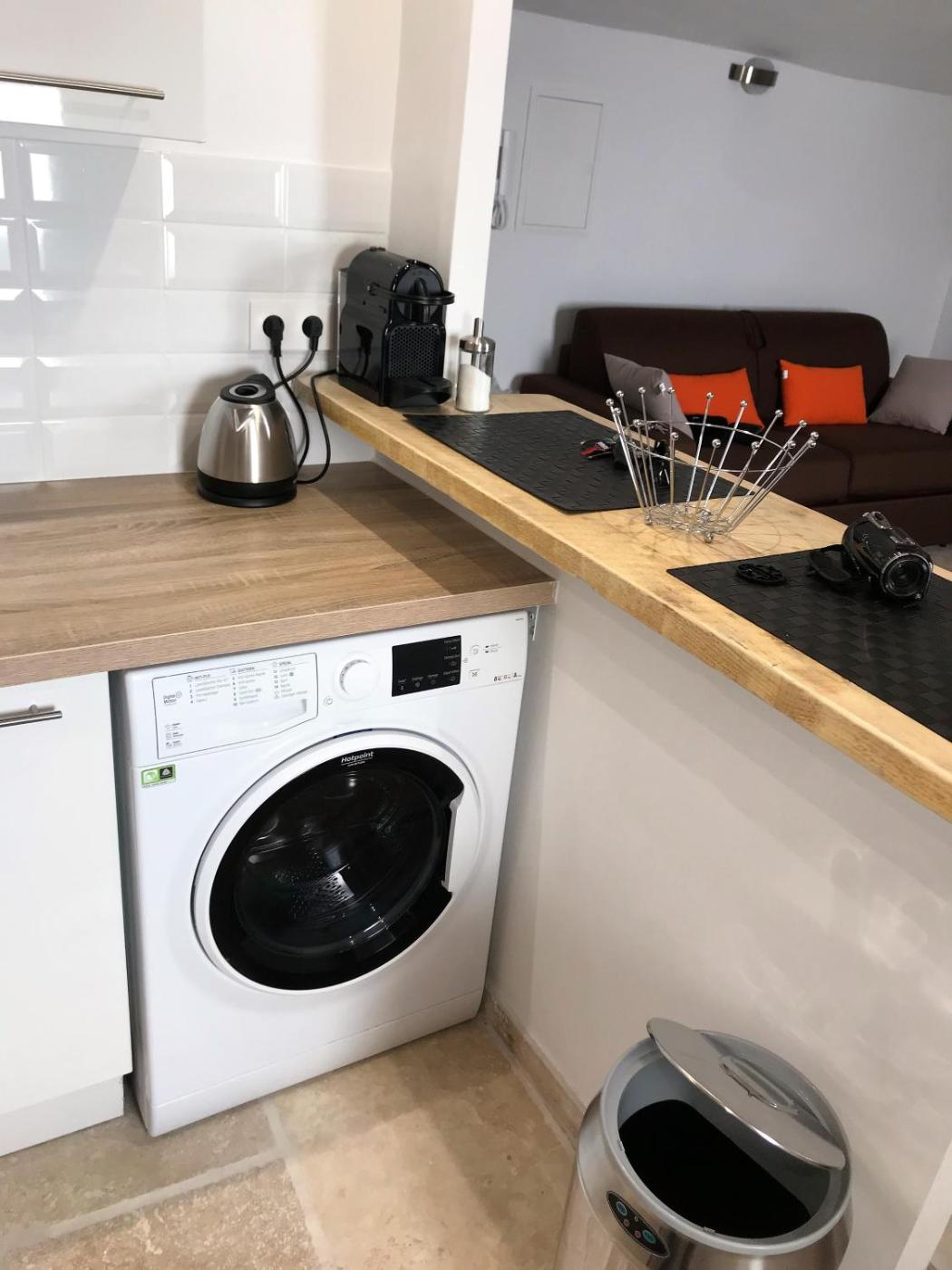 Studio. The apartment features a seating area, a dining area, as well as a private bathroom featuring a shower and a hairdryer. Meals can be prepared in the well-fitted kitchen, which comes with a stovetop, a refrigerator, kitchenware and an oven. The air-conditioned apartment provides a flat-screen TV with streaming services, a washing machine, a private entrance, a tea and coffee maker as well as ancourtyard view. The unit offers 1 bed.